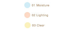 特色として言うと、01が保湿、02が光、03がカバーということらしいです。